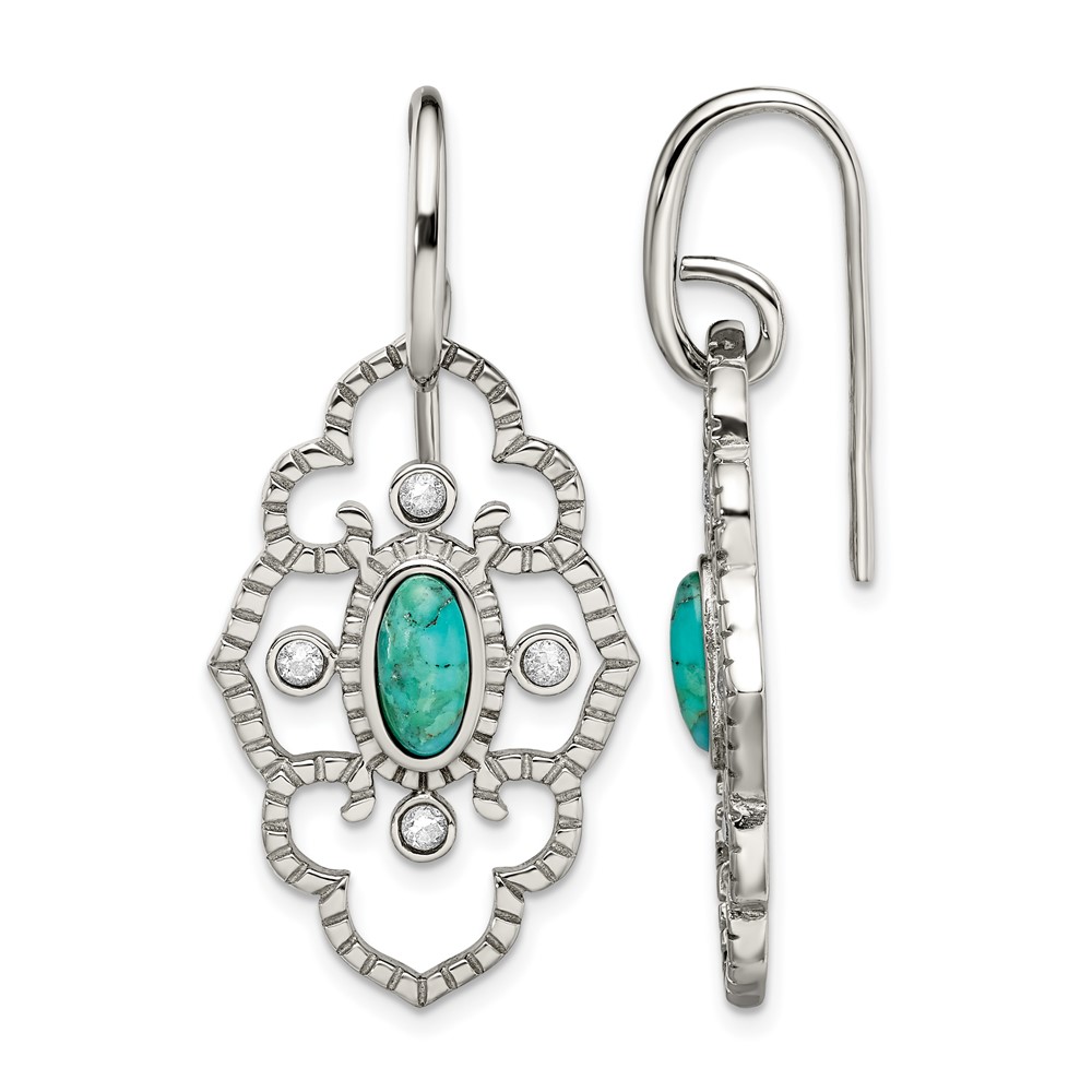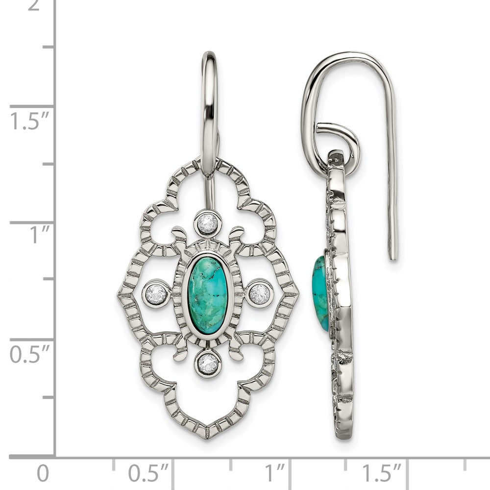 Chisel Stainless Steel Polished Imitation Turquoise and CZ Dangle Shepherd Hook Earrings