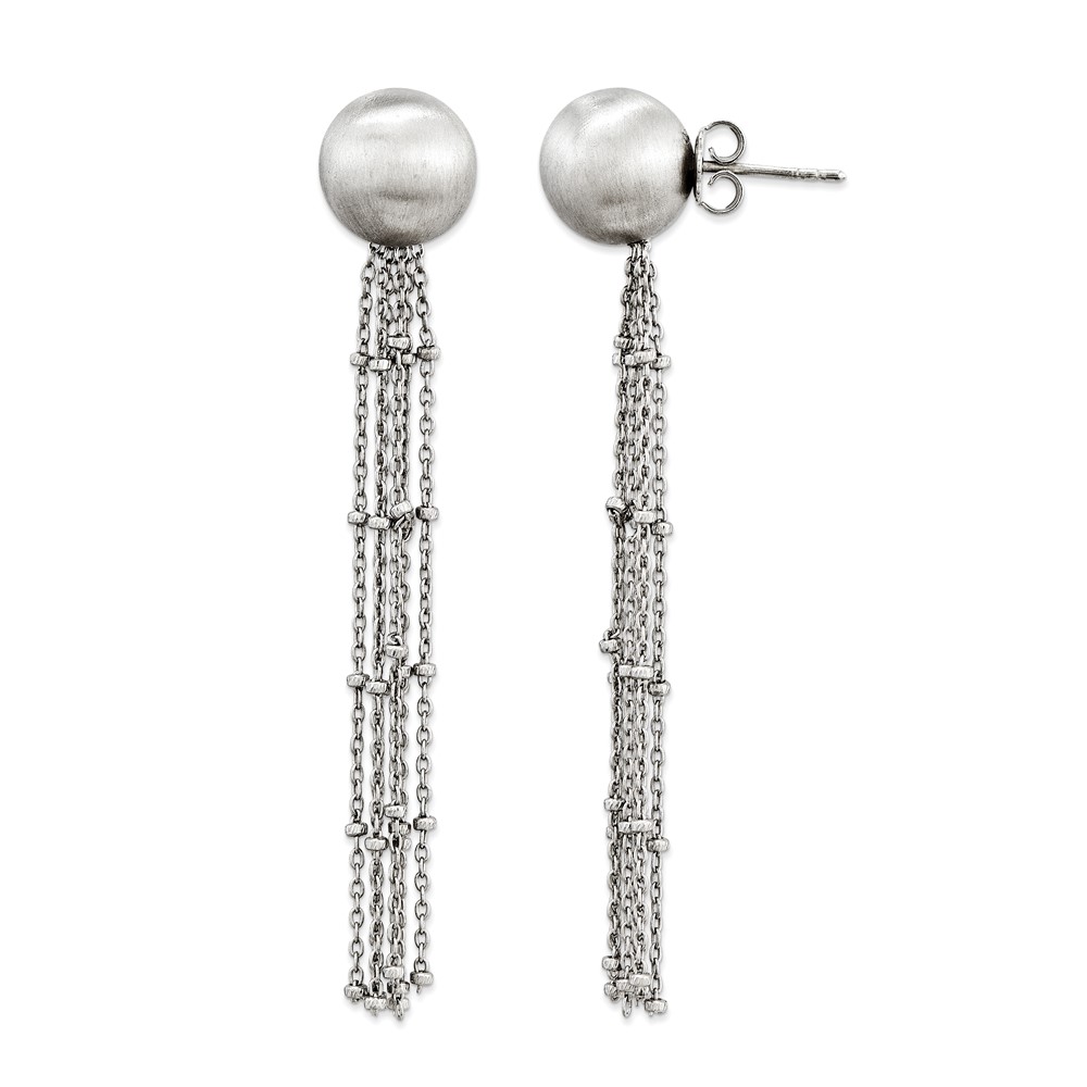 Sterling Silver 1 ball Dangle Chain Rhodium Earrings