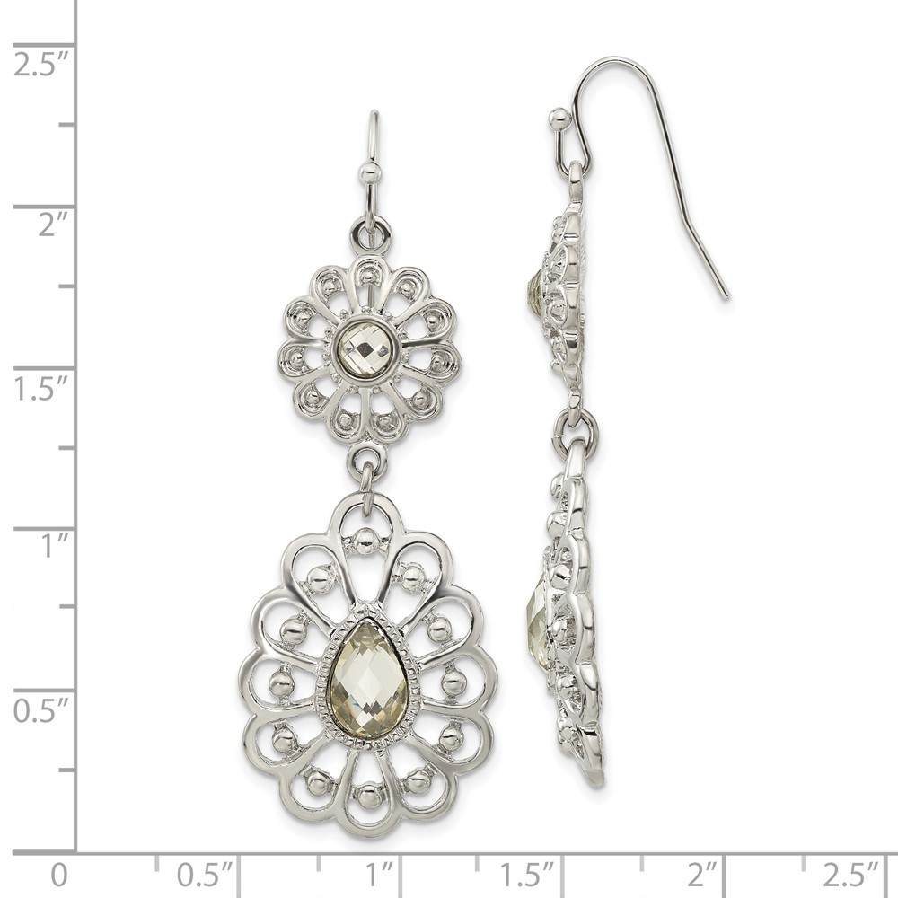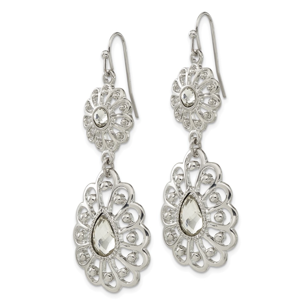 1928 Silver-tone Crystal Dangle Shepherds Hook Earrings