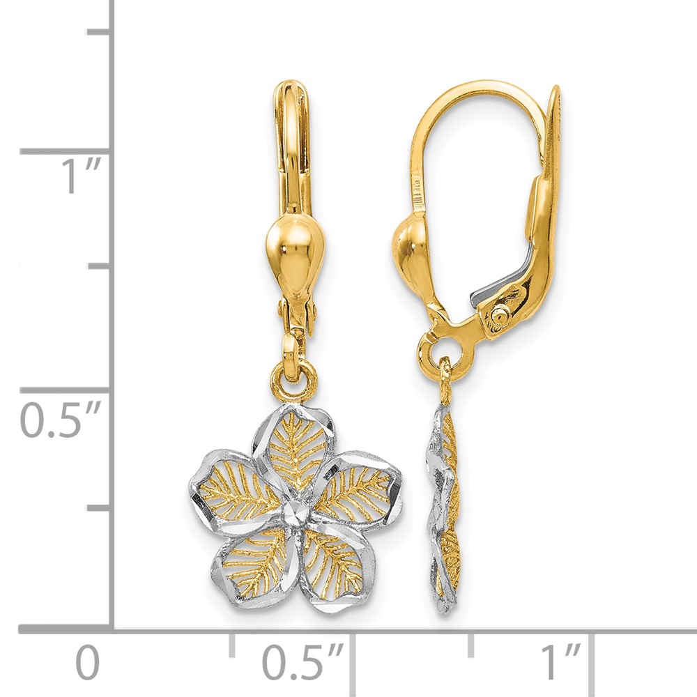 Leslie's 10K Rhod-plated Polished D/C Filigree Flower Leverback Earrings