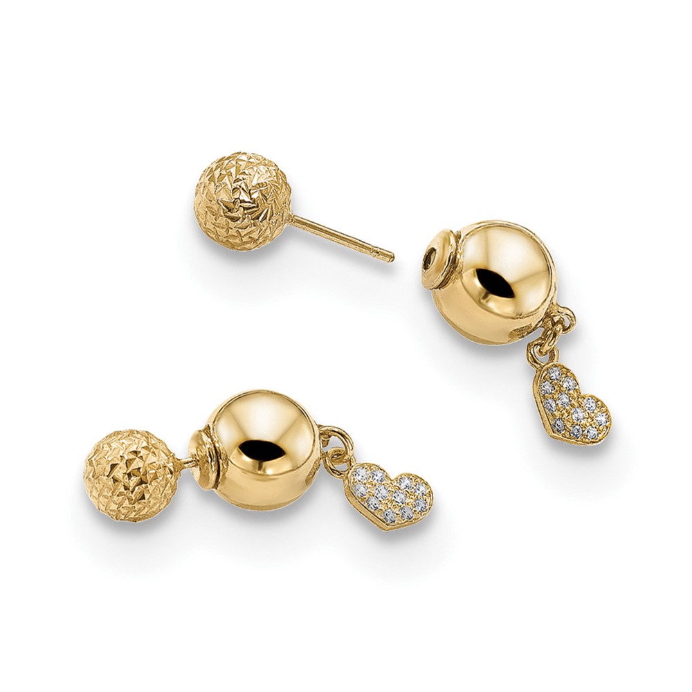 Leslie's Sterling Silver Gold-plated CZ Heart Front and Back Earrings
