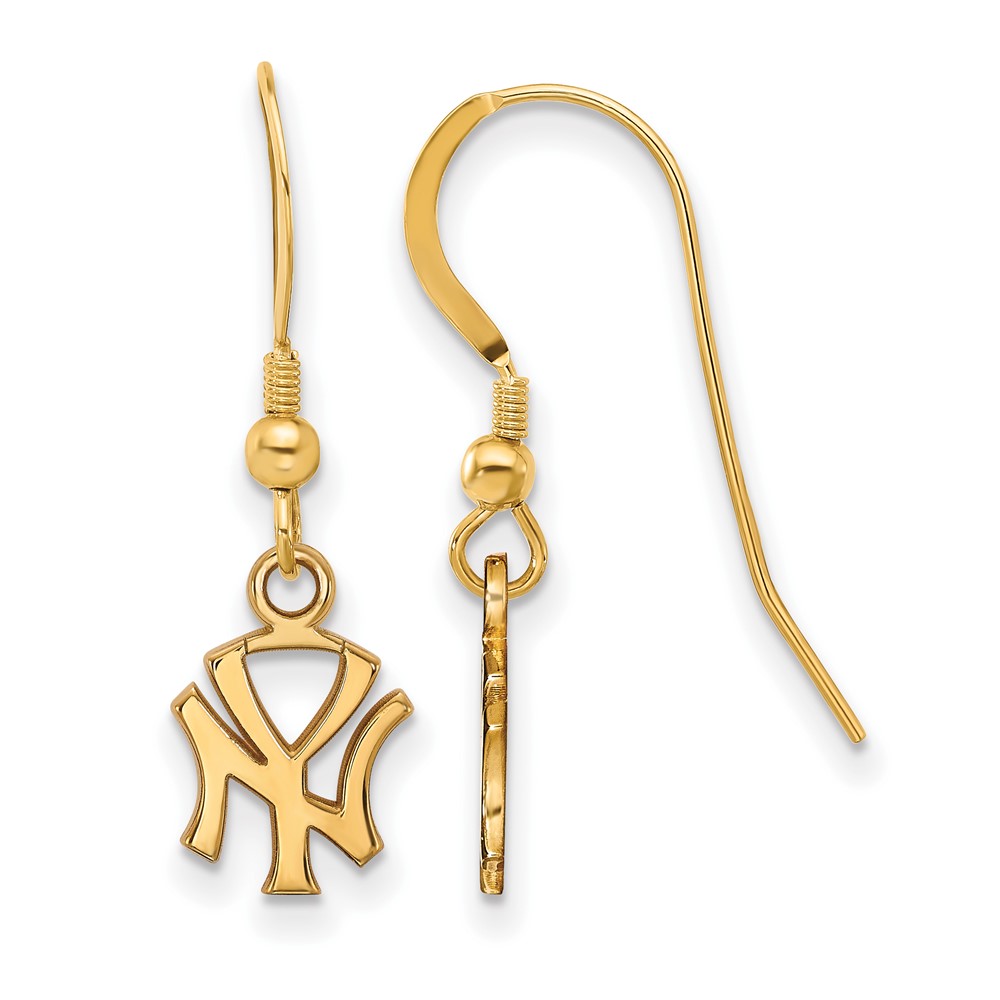 Sterling Silver Gold Plated Major League Baseball LogoArt New York Yankees N-Y Dangle Earrings