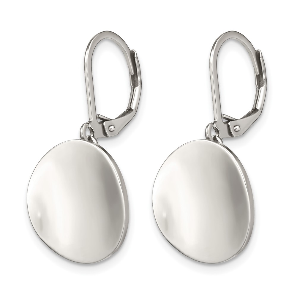 Chisel Stainless Steel Polished Curved Disk Dangle Leverback Earrings