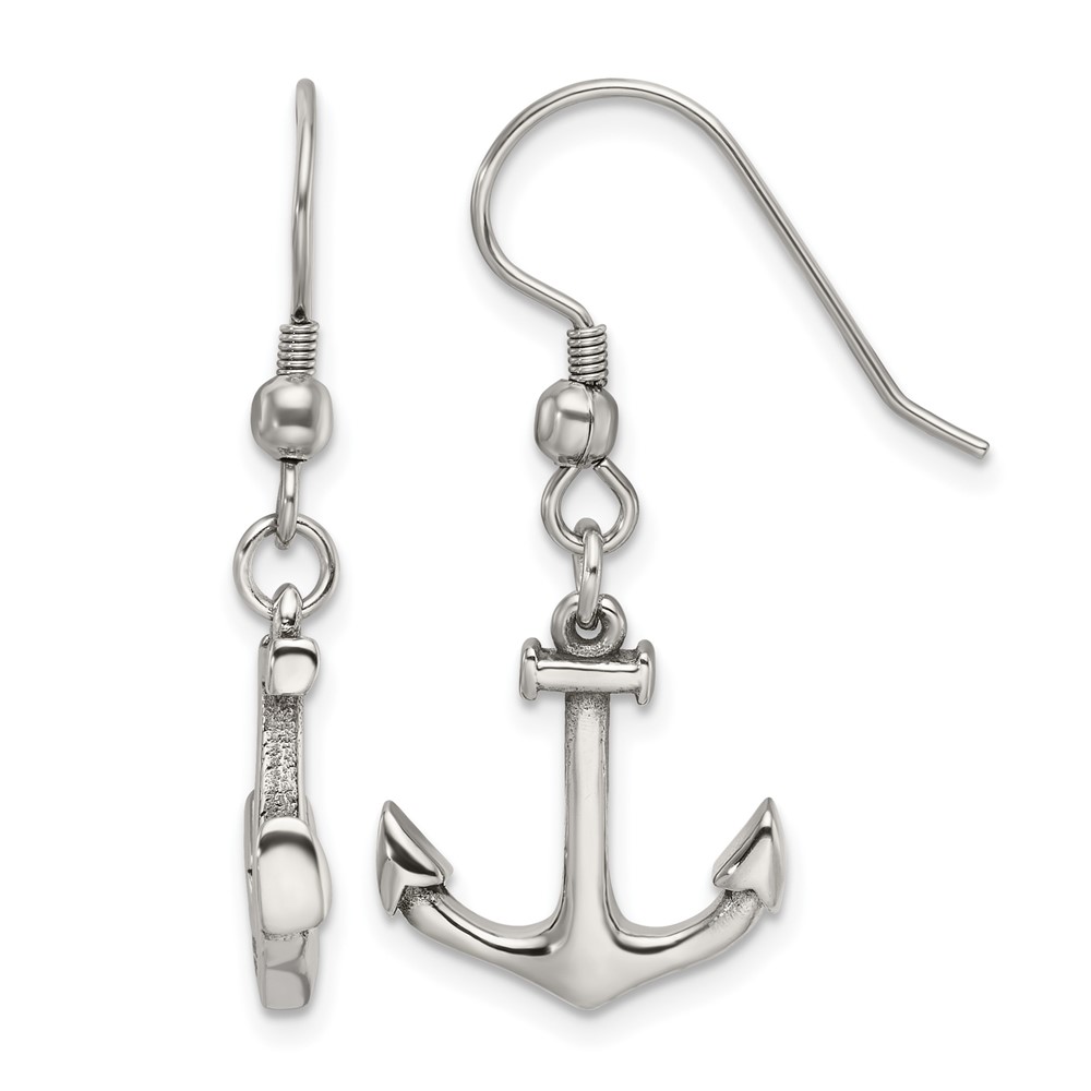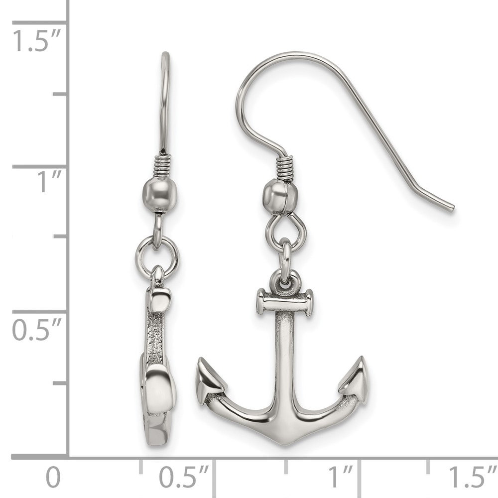Chisel Stainless Steel Polished Anchor Dangle Shepherd Hook Earrings