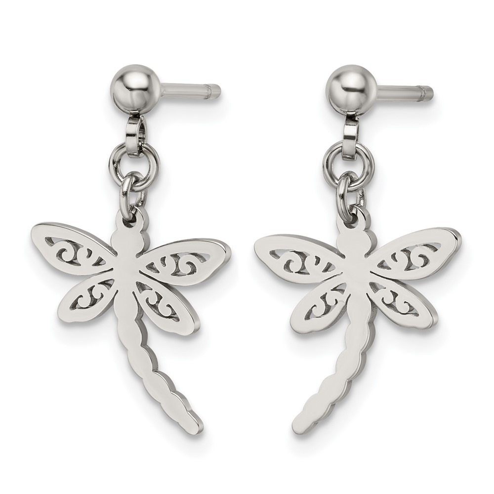 Chisel Stainless Steel Polished Dragonfly Post Dangle Earrings