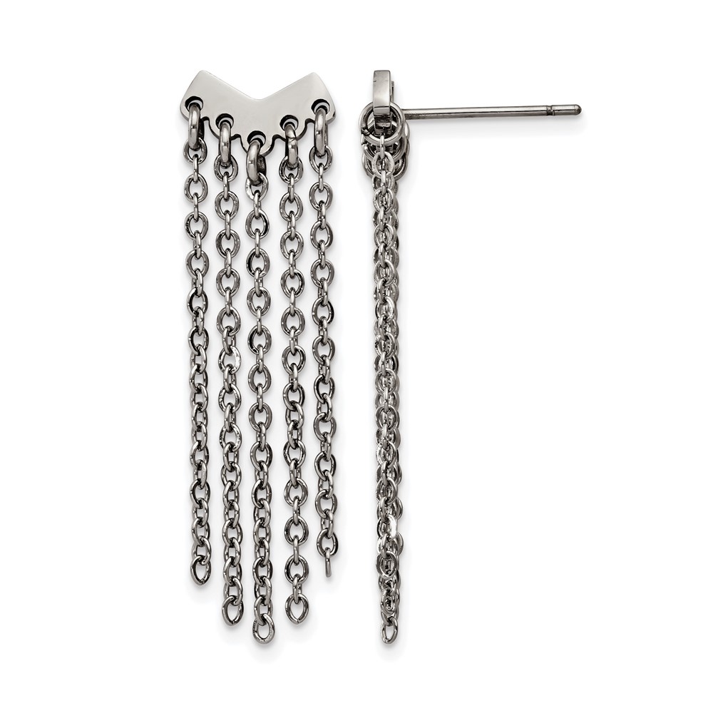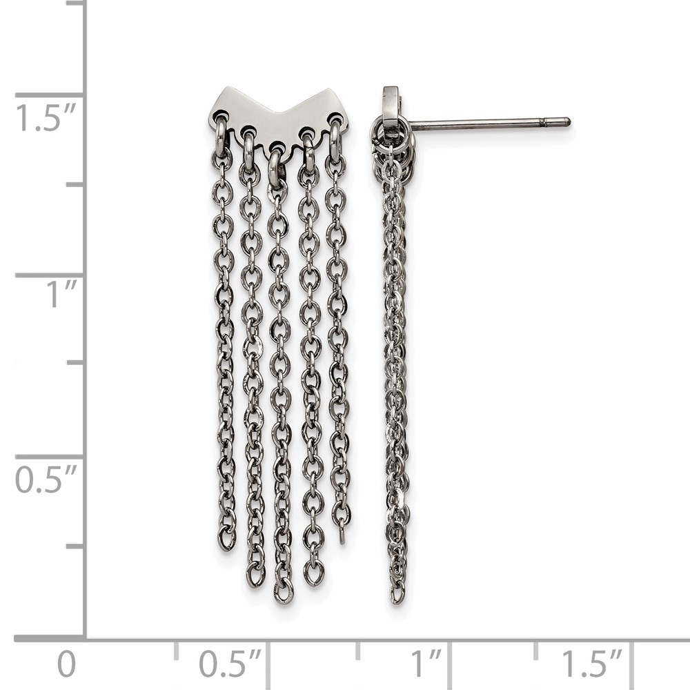 Stainless Steel Polished with Dangle Chain Post Earrings