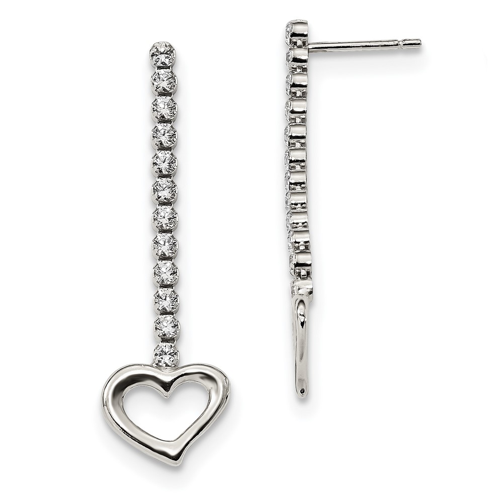 Sterling Silver CZ Dangle Heart Earrings