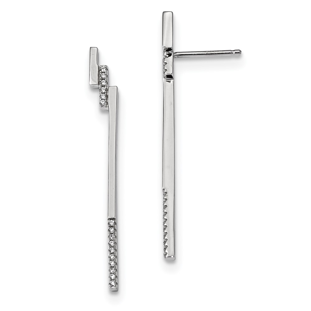 Sterling Silver Rhodium-plated Bar and CZ Post Earrings