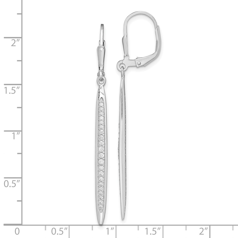 Sterling Silver Rhodium-plated Polished CZ Bar Leverback Dangle Earrings