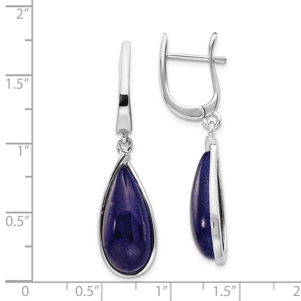 Sterling Silver Rhodium-plated Lapis Teardrop Hinged Earrings