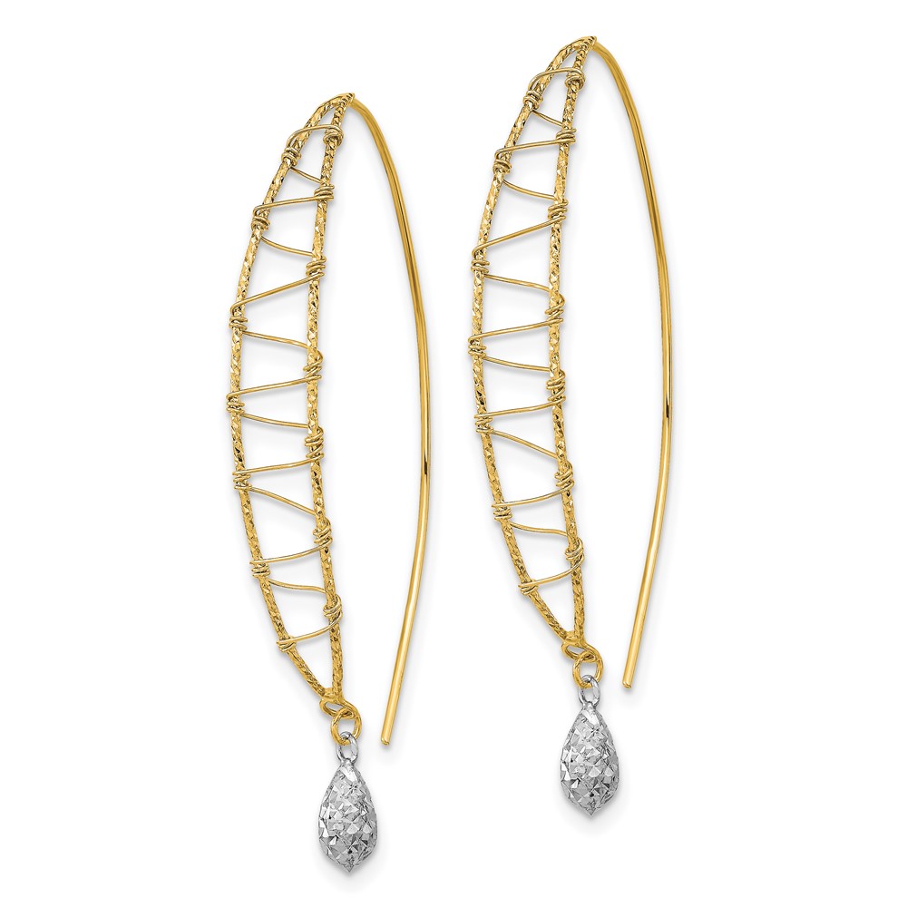 14k Two-tone Polished Wire-Wrapped Diamond-cut Dangle Threader Earrings
