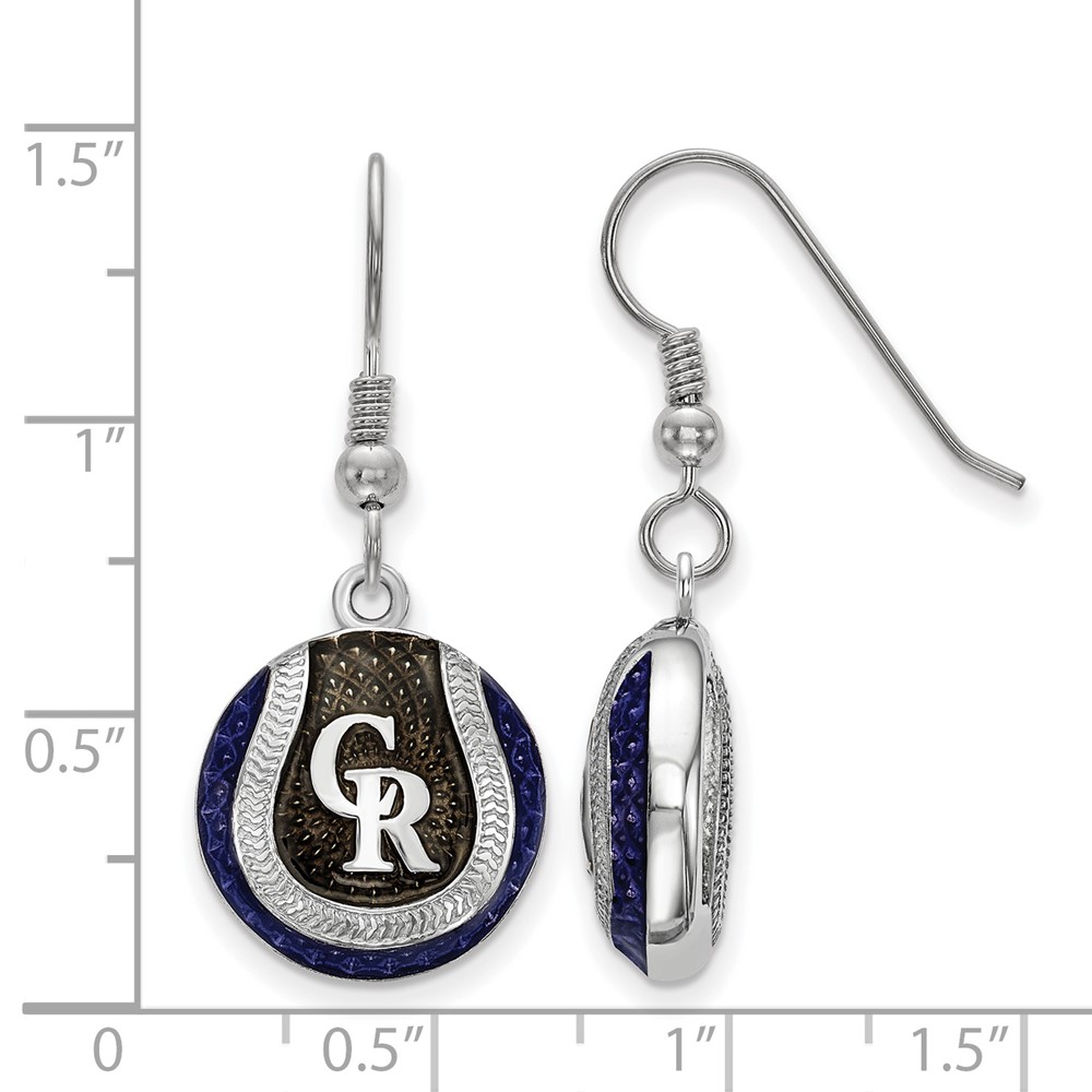 Sterling Silver Rhodium Plated Major League Baseball LogoArt Colorado Rockies Enamel Earrings