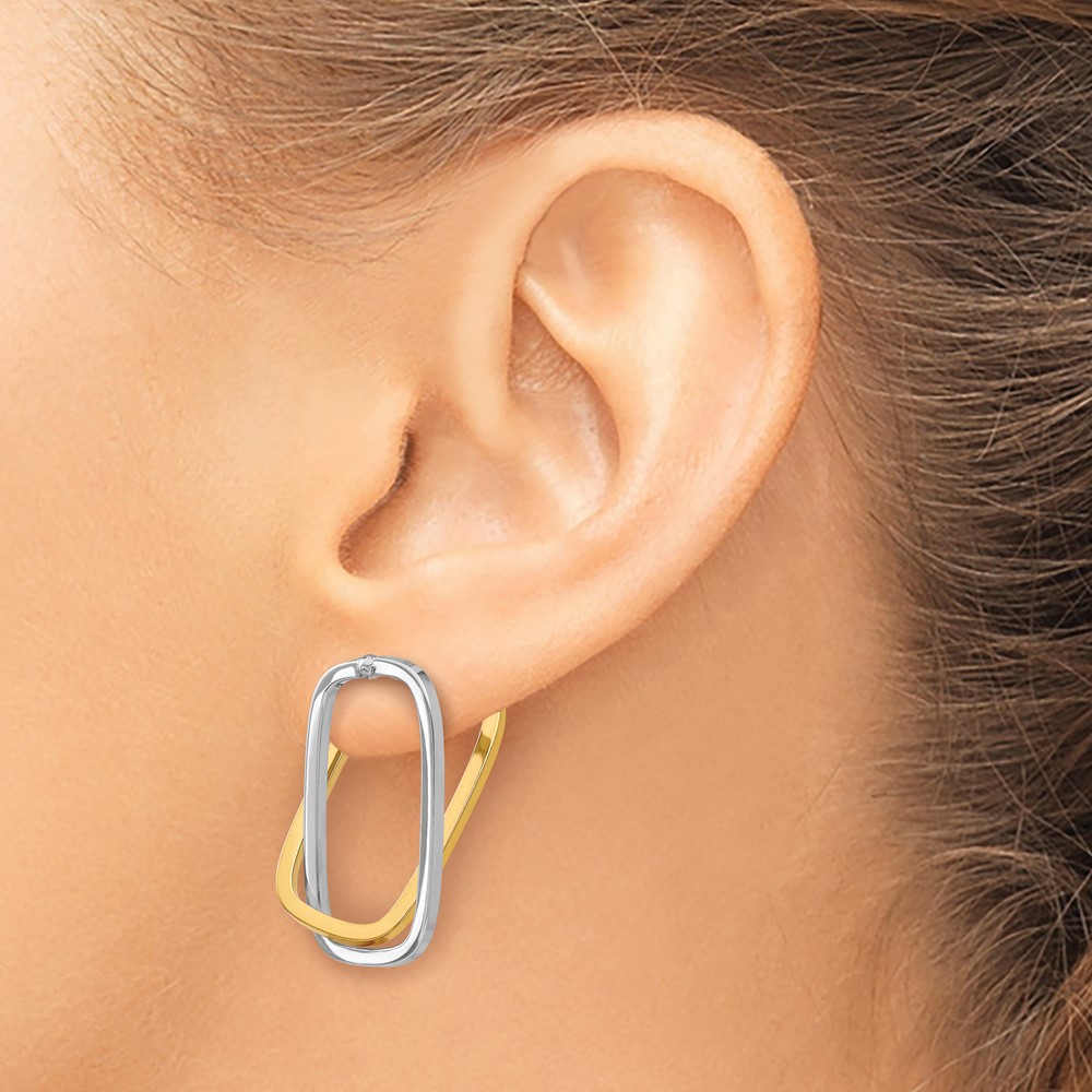14k Two-Tone /Versatile-Can be Worn 3 Ways/ Rectangle Post Earrings
