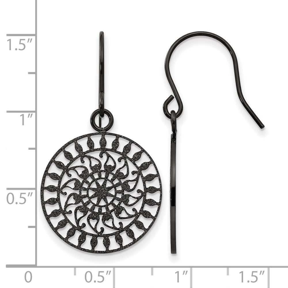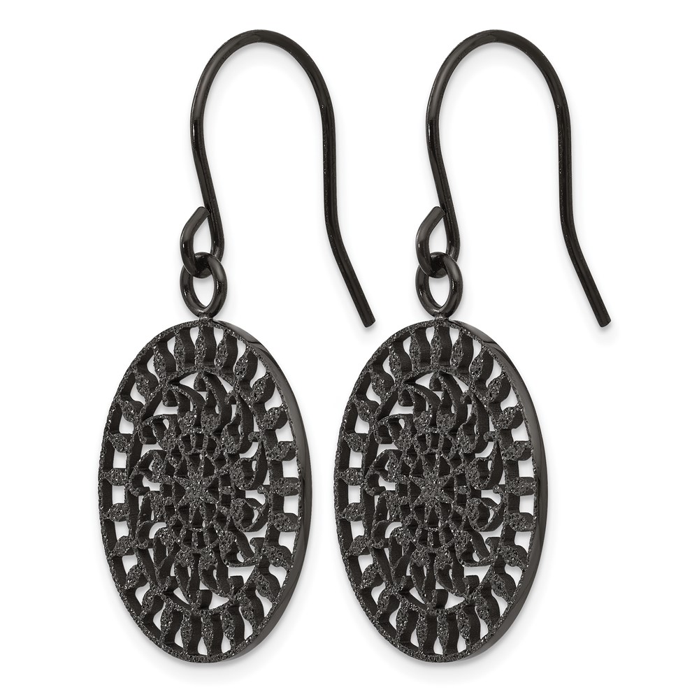 Stainless Steel Polished Black IP-plated Laser Cut Shepherd Hook Earrings
