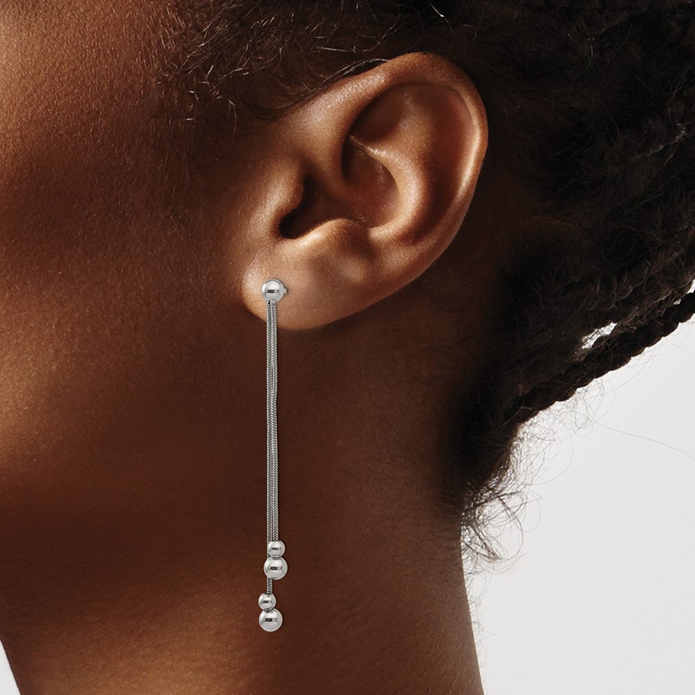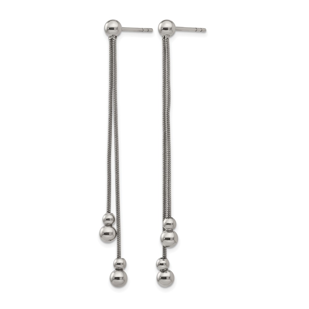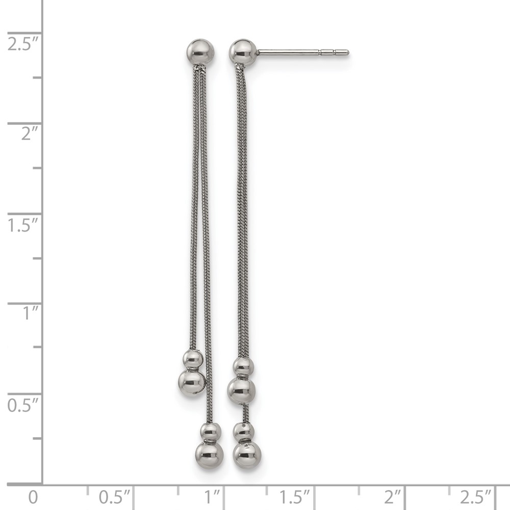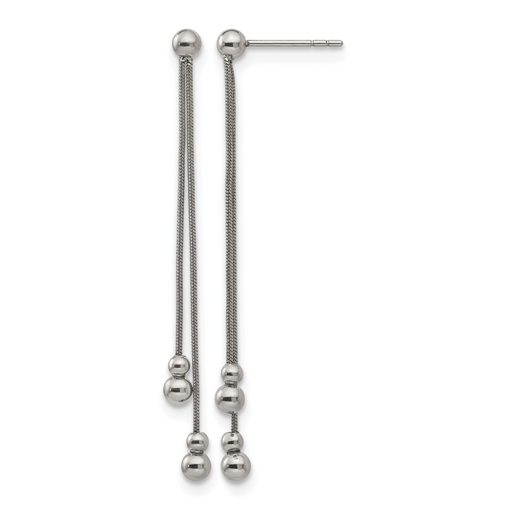 Stainless Steel Polished Beaded Snake Chain Post Dangle Earrings