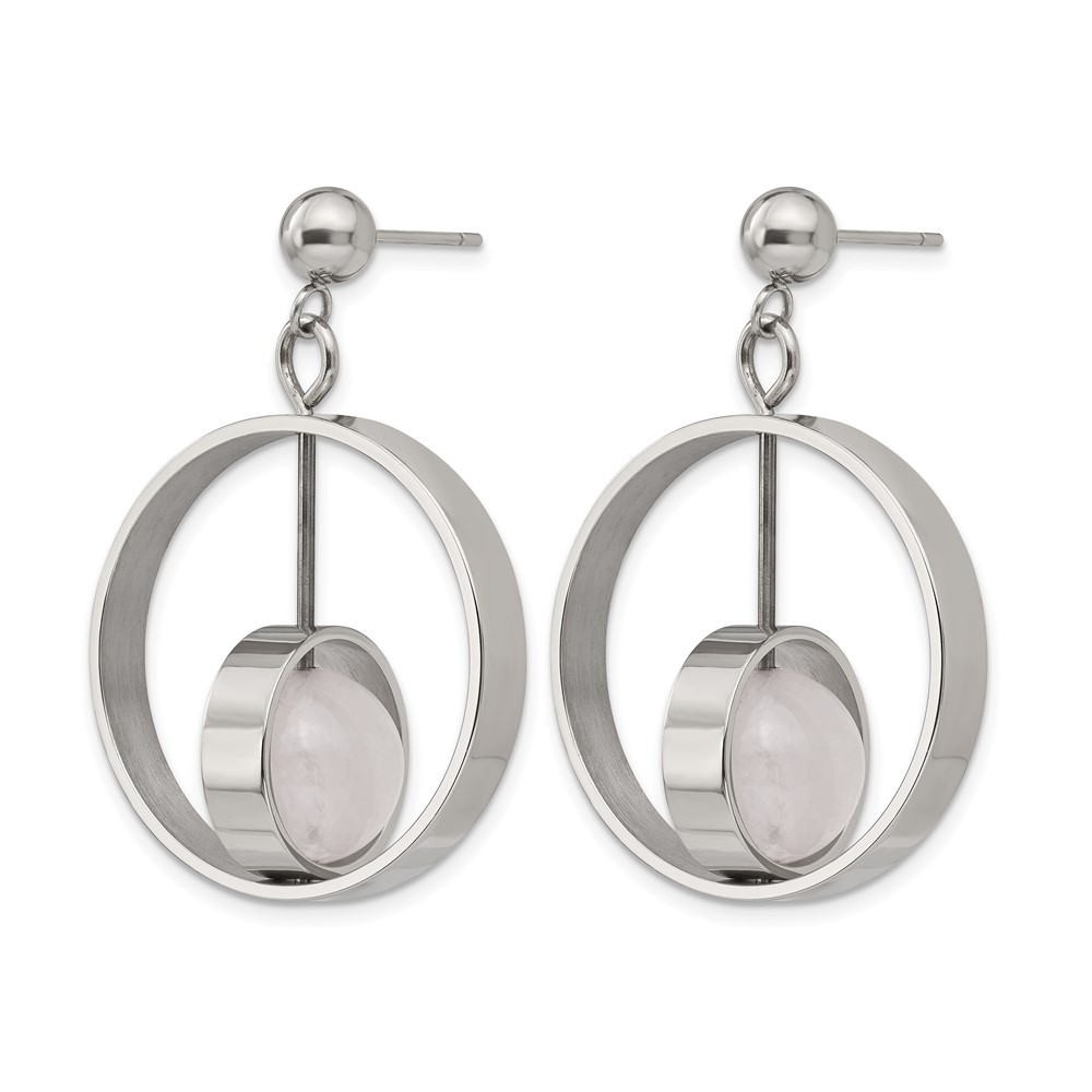 Stainless Steel Polished with Rose Quartz Moveable Post Dangle Earrings