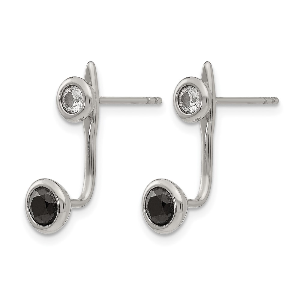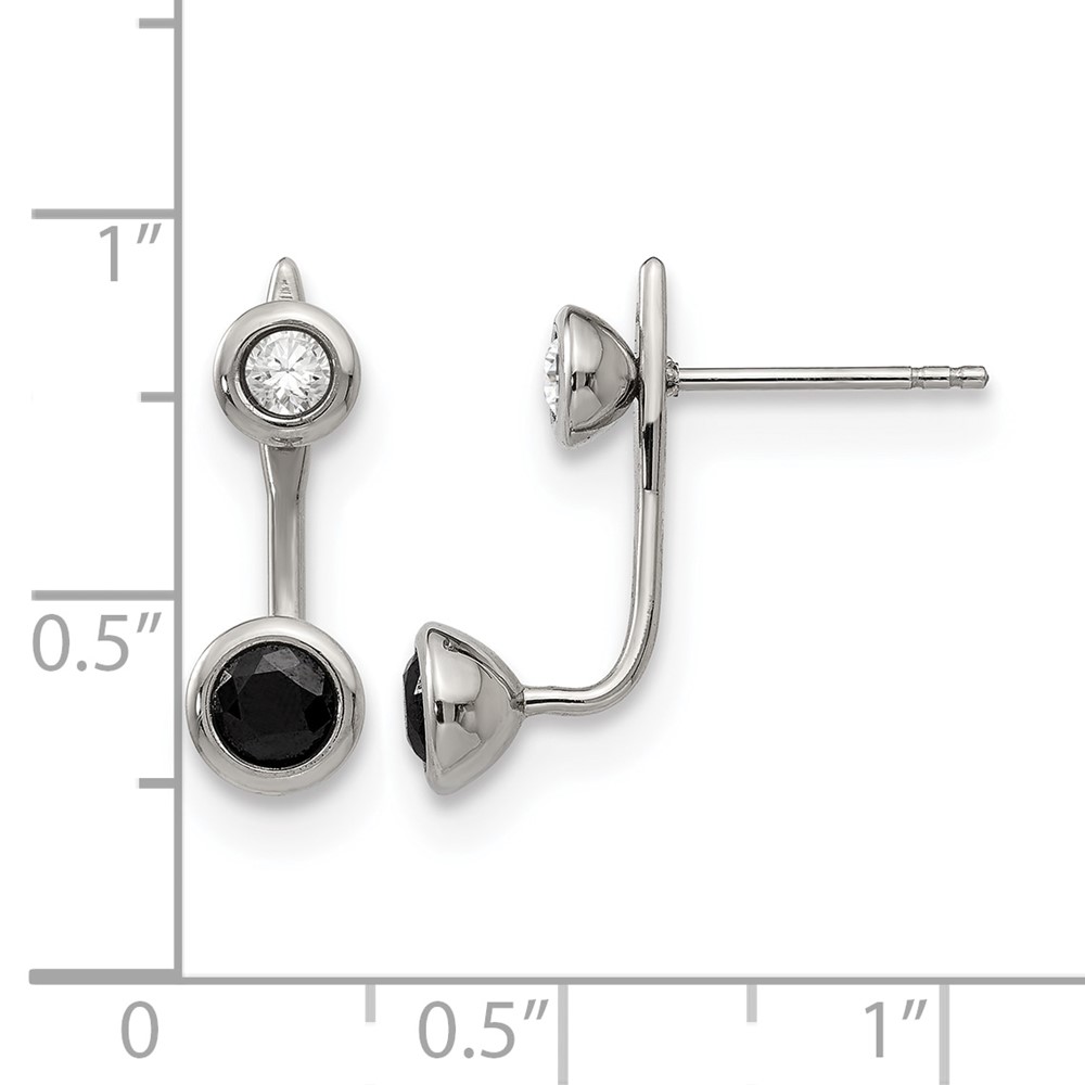Stainless Steel Polished Black and White CZ Post Earrings