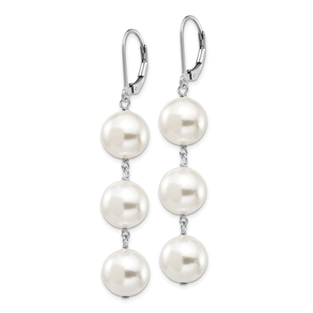 Majestik Sterling Silver Rhodium-plated 10-11mm Imitation Shell Pearl Dangle Earrings