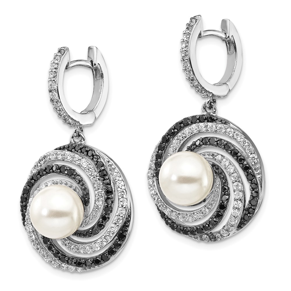 Sterling Silver Majestik Rhod-plated 8-9mm Shell Blk and Wht CZ Earrings