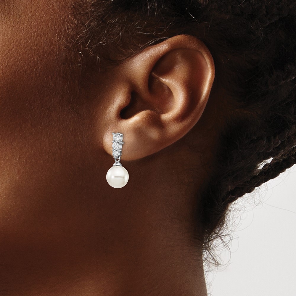 Majestik Sterling Silver Rhodium-plated 8-9mm Imitation Shell Pearl CZ Dangle Earrings