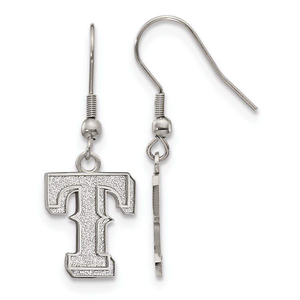 Stainless Steel Major League Baseball LogoArt Texas Rangers Letter T Dangle Earrings
