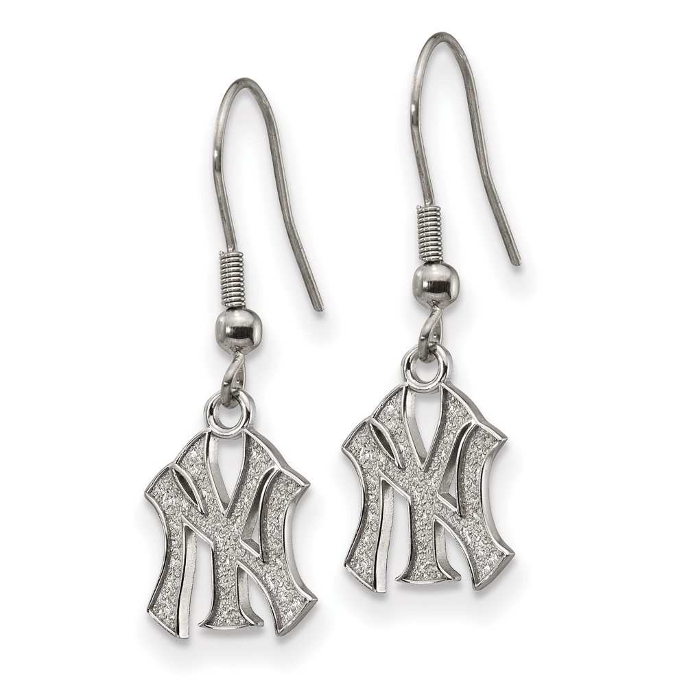 Stainless Steel Major League Baseball LogoArt New York Yankees N-Y Dangle Earrings