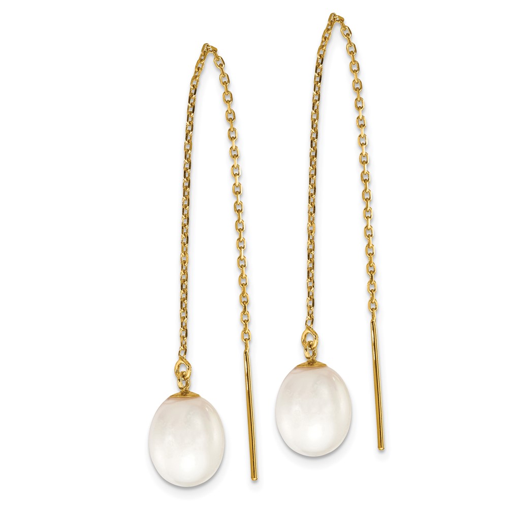 14k 7-8mm White Rice Freshwater Cultured Pearl Cable Chain Threader Earrings