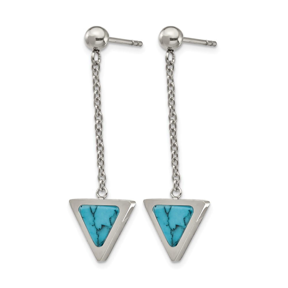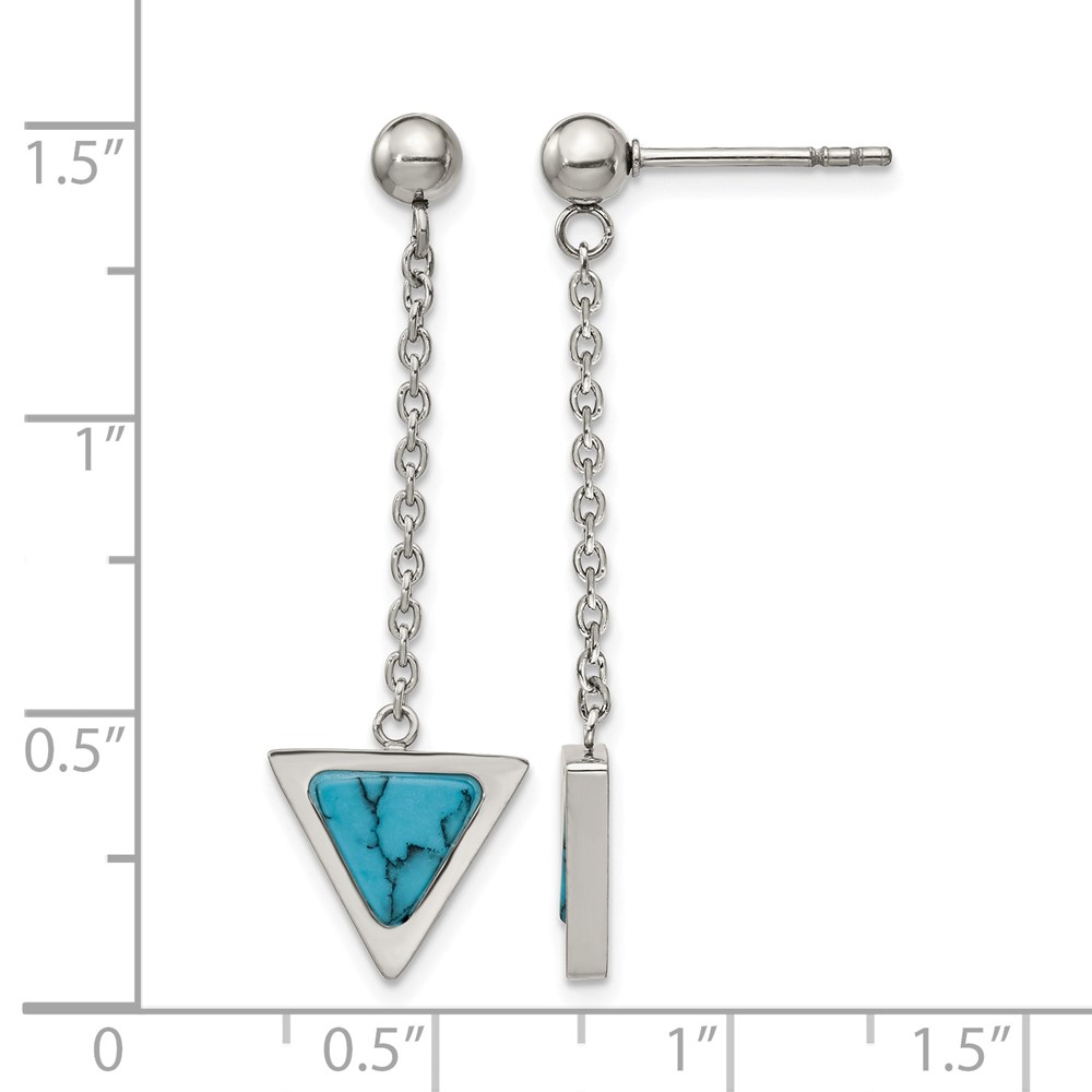 Chisel Stainless Steel Polished with Reconstructed Howlite Triangle Post Dangle Earrings