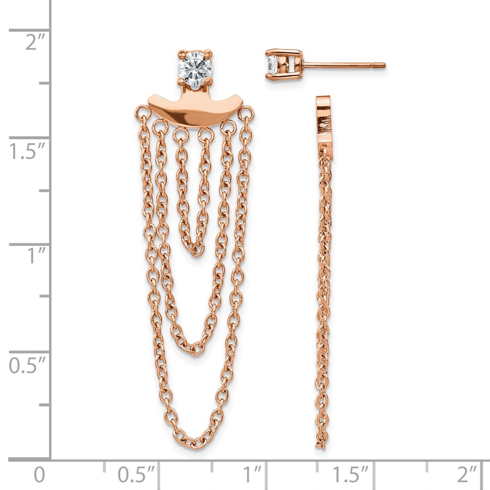 Chisel Stainless Steel Polished Rose IP-plated CZ Post with Jacket Earrings