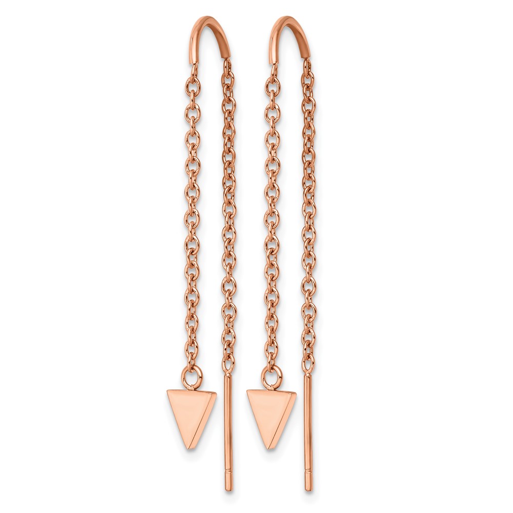 Chisel Stainless Steel Polished Rose IP-plated Triangle Threader Dangle Earrings
