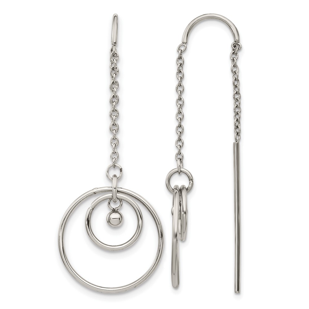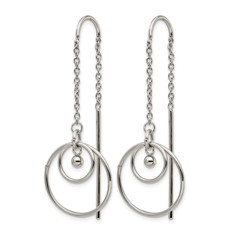 Chisel Stainless Steel Polished Circle Dangle Threader Earrings