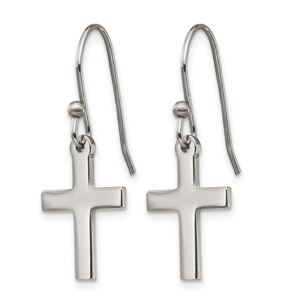 Chisel Stainless Steel Polished Cross Dangle Shepherd Hook Earrings