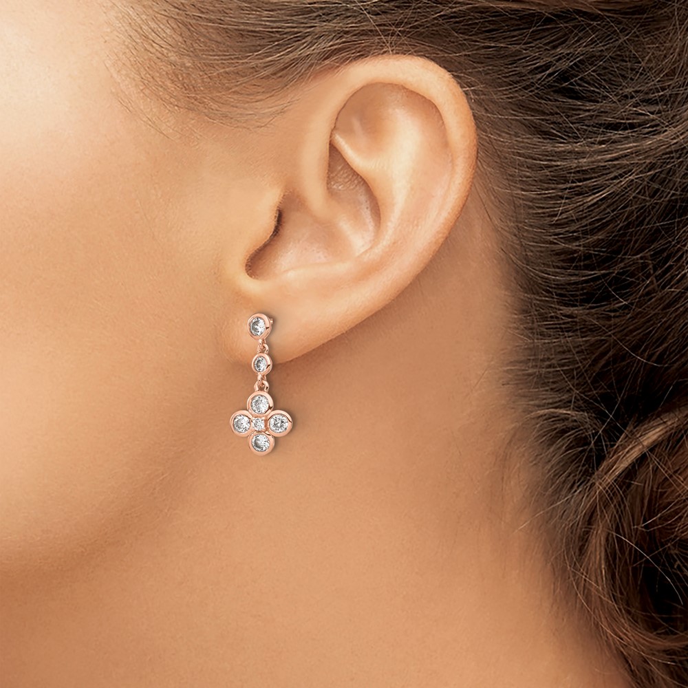 Sterling Silver Rose-tone Polished CZ Post Dangle Earrings