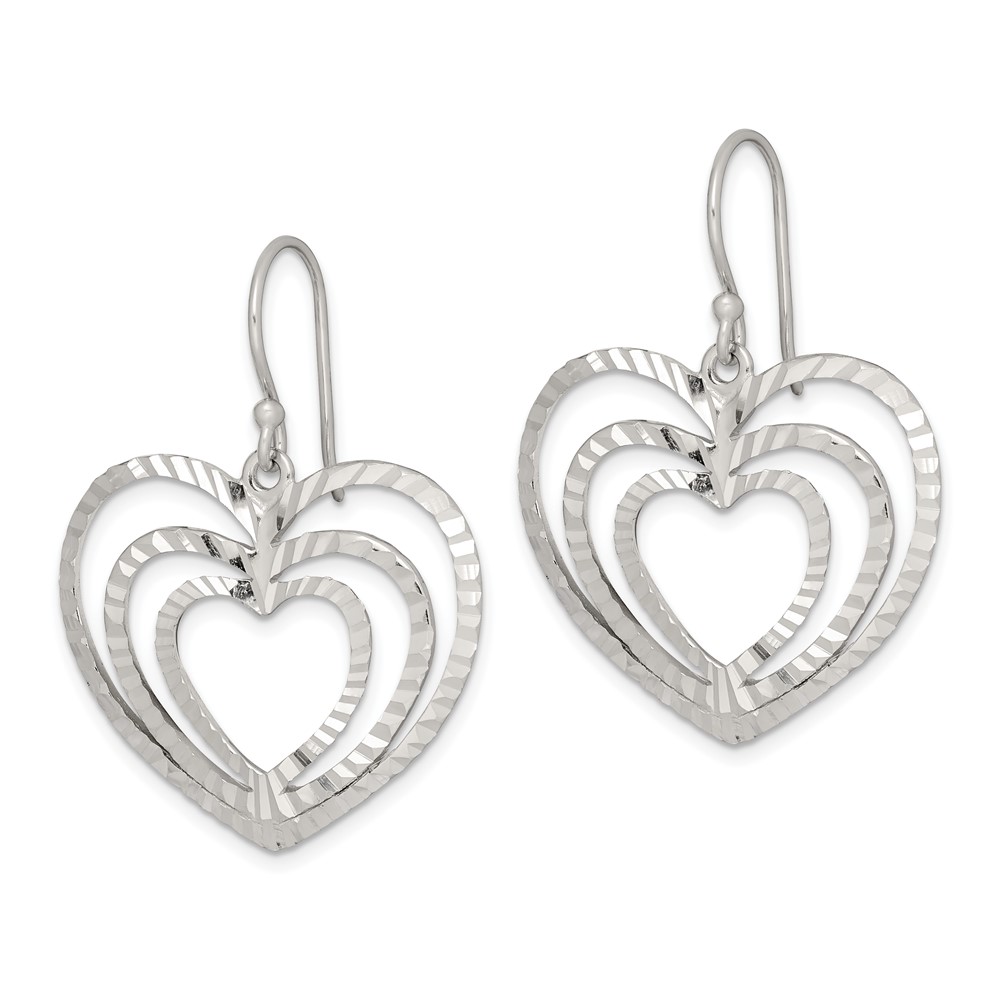 Sterling Silver Diamond-cut Heart Dangle Earrings