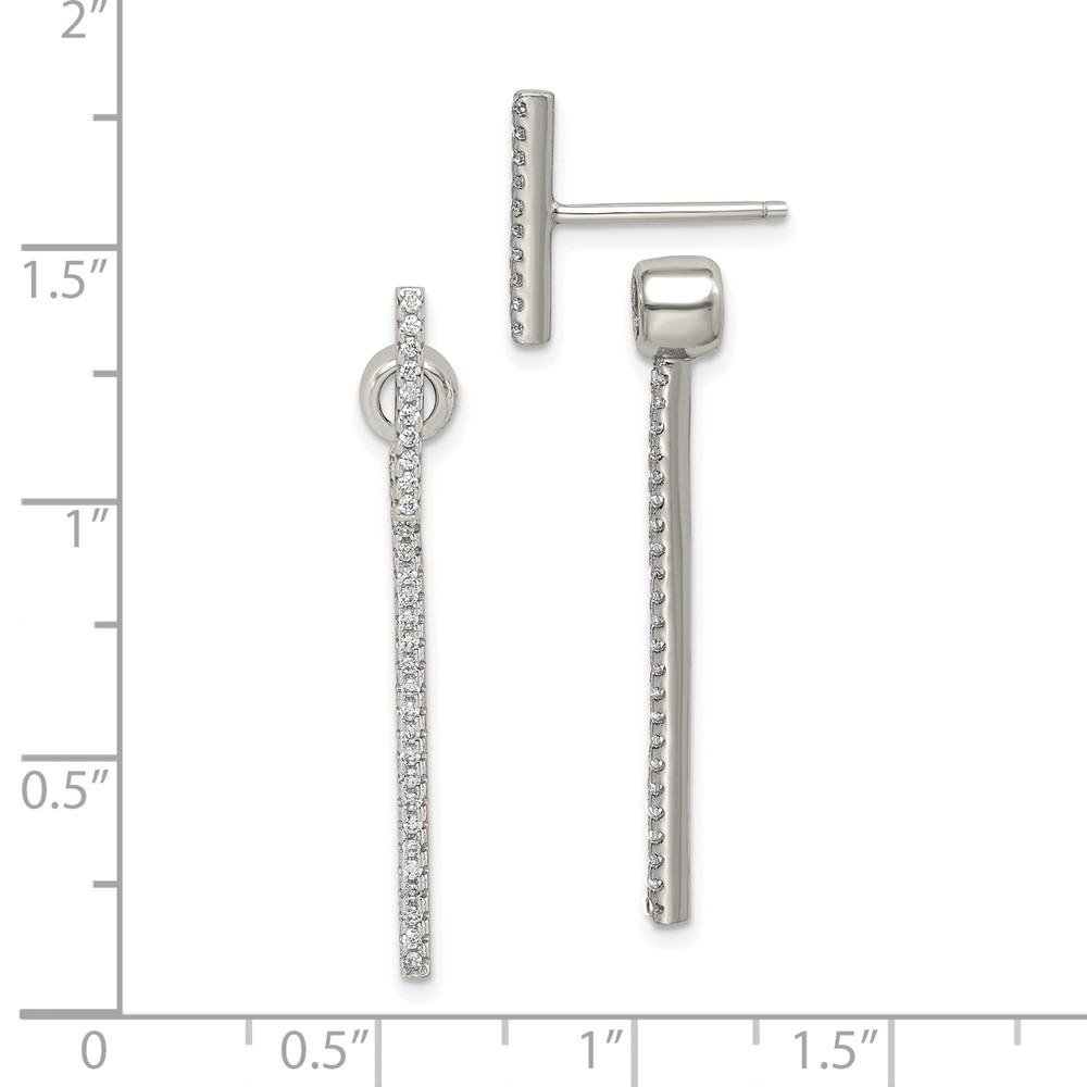 Sterling Silver CZ Bar Front and Back Earrings