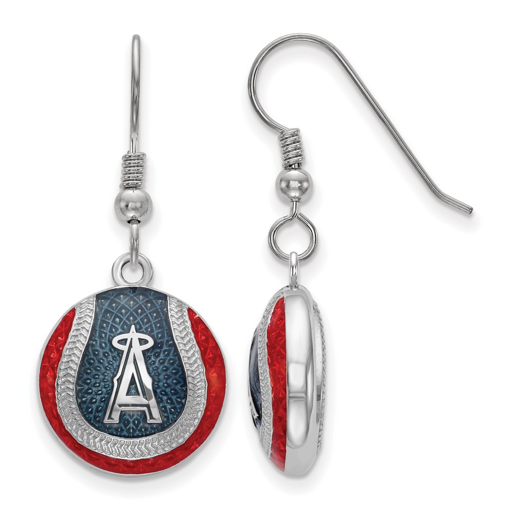 Sterling Silver Rhodium Plated Major League Baseball LogoArt Los Angeles Angels Enamel Dangle Earrings