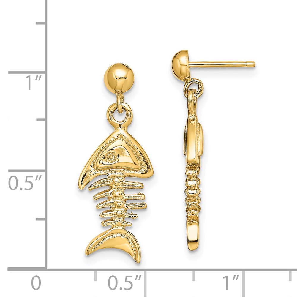 14K 3-D Fishbone Dangle Post Earrings