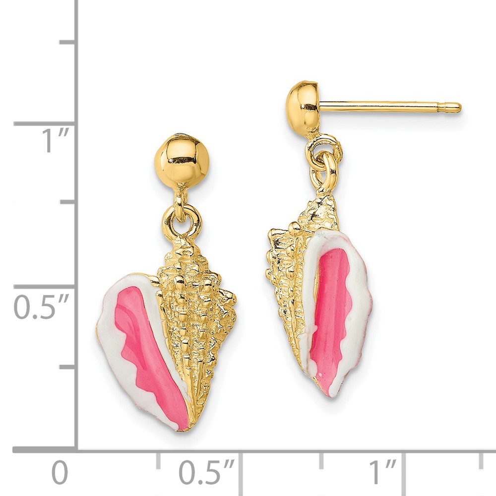 14K White and Pink Enamel Conch Shell Dangle Earrings