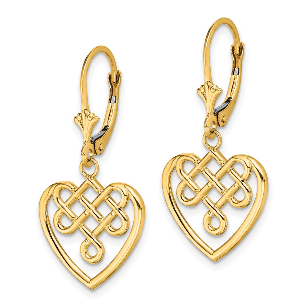 14K Celtic Knot Heart Dangle Leverback Earrings