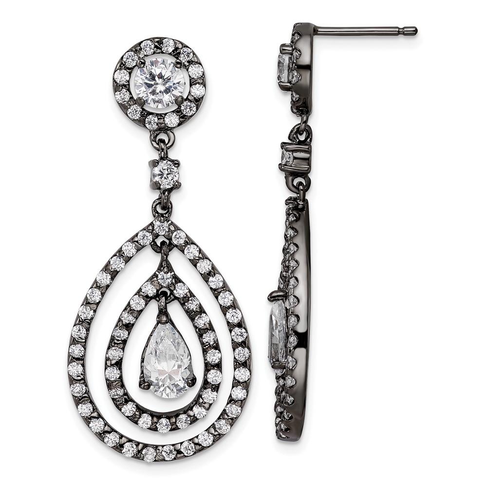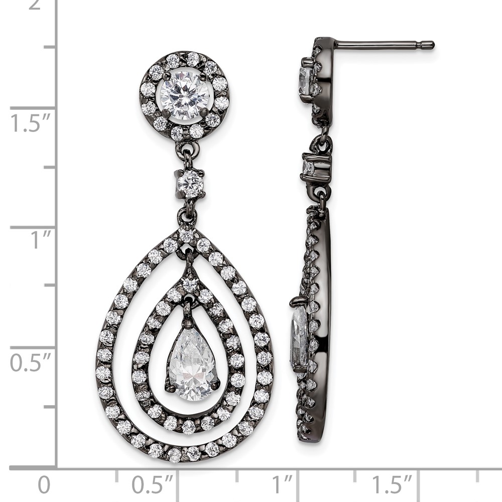 Sterling Silver Black Rhodium-plated White CZ Dangle Earrings