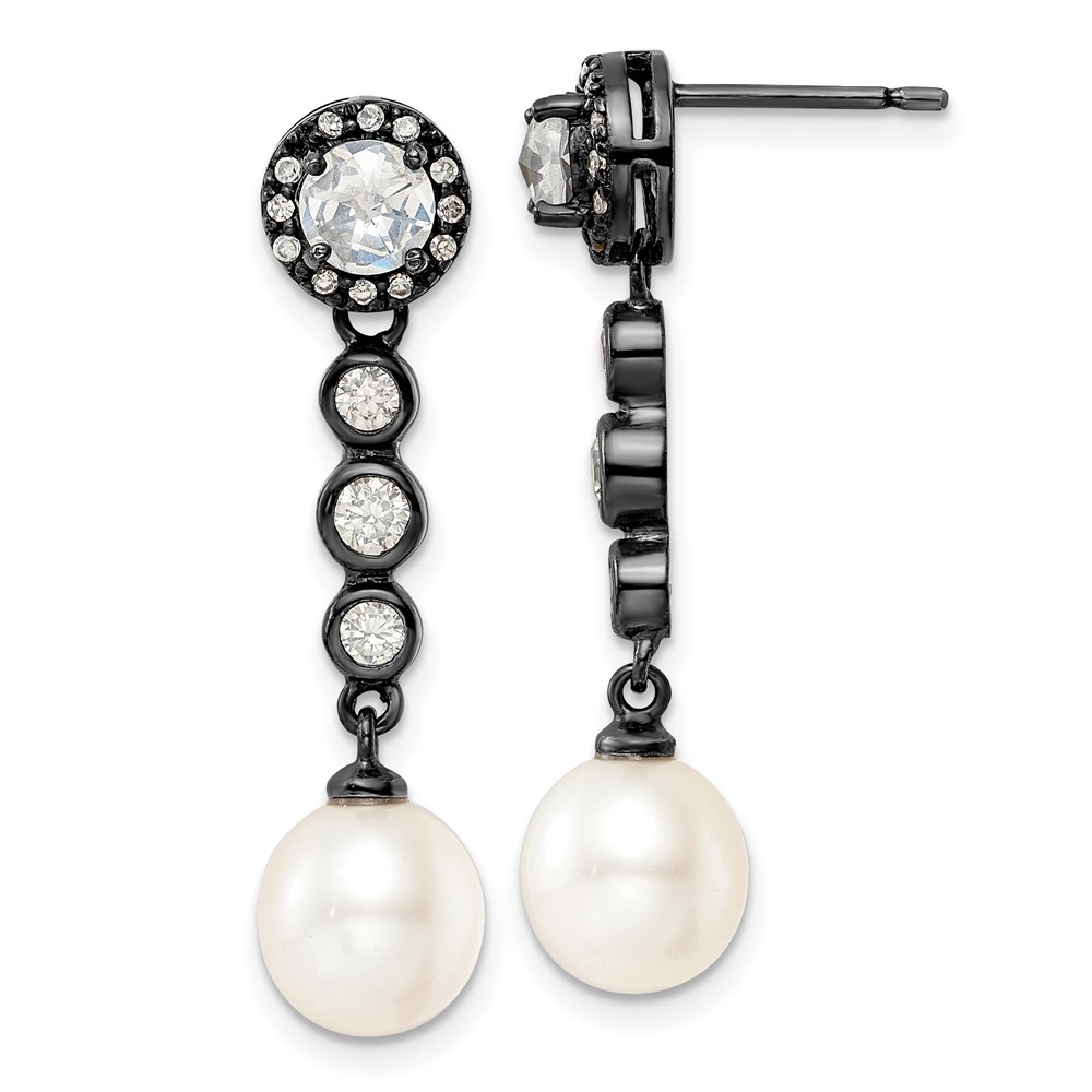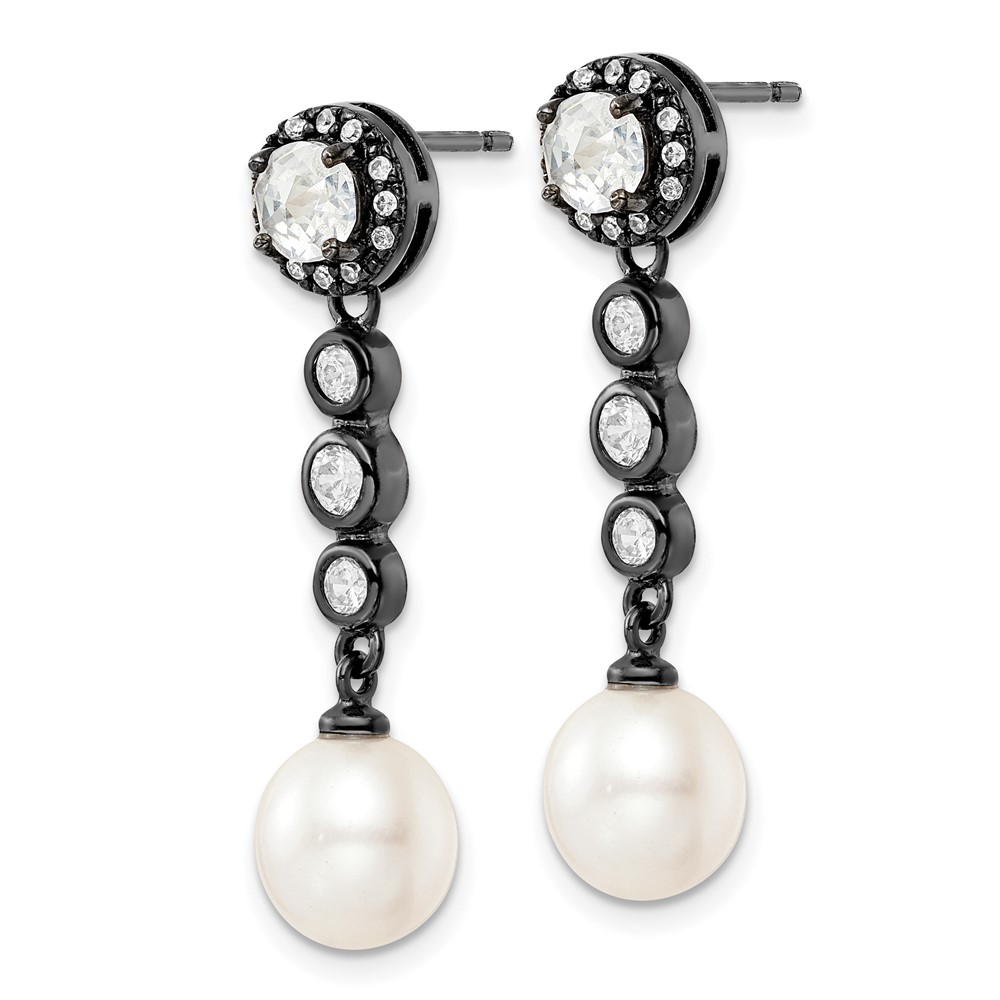 Sterling Silver Black Rhodium CZ & FWC Pearl Drop Earrings