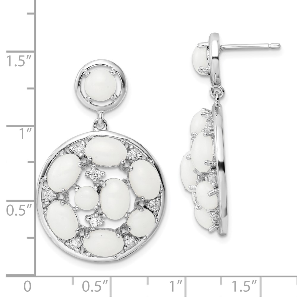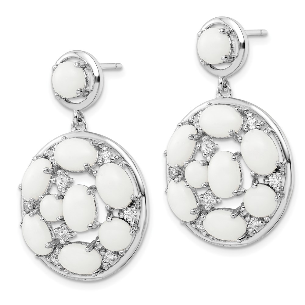 Rhodium Plate Silver Simulated White Agate Dangle Earring