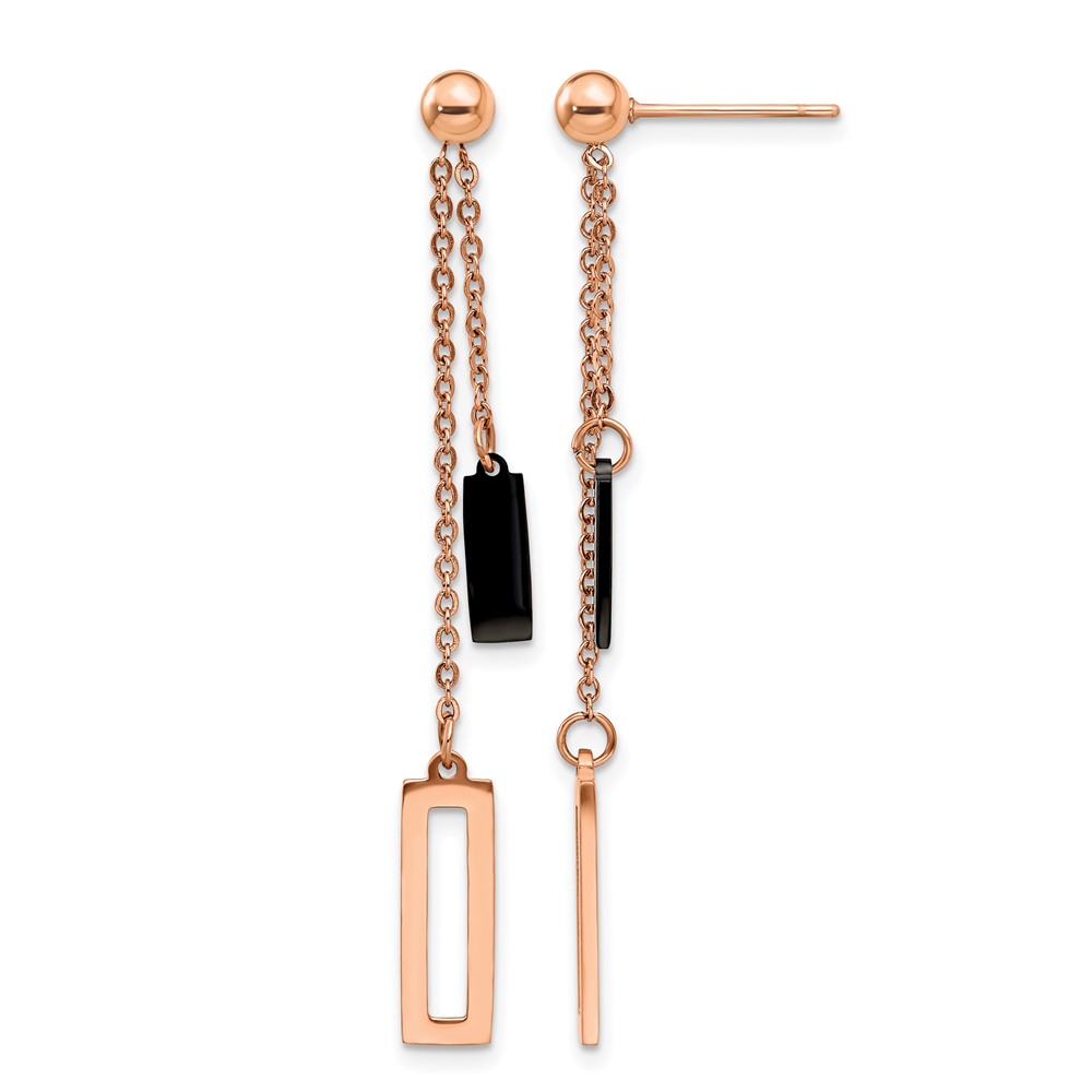 Chisel Stainless Steel Polished Black and Rose IP-plated Post Dangle Earrings
