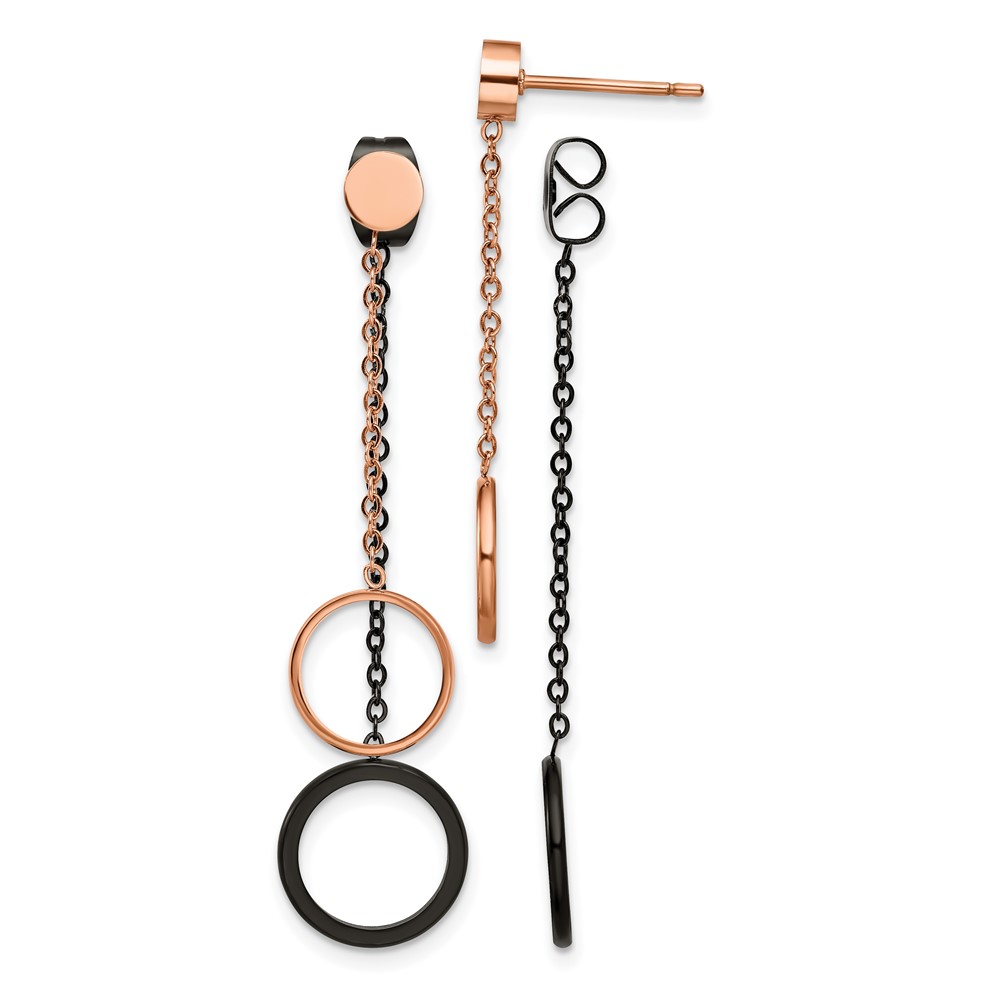 Chisel Stainless Steel Polished Black and Rose IP-plated Front and Back Post Dangle Earrings