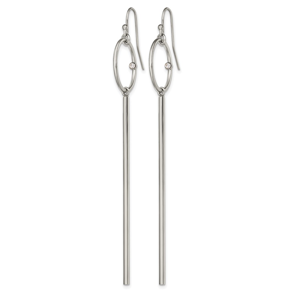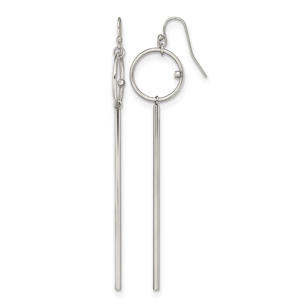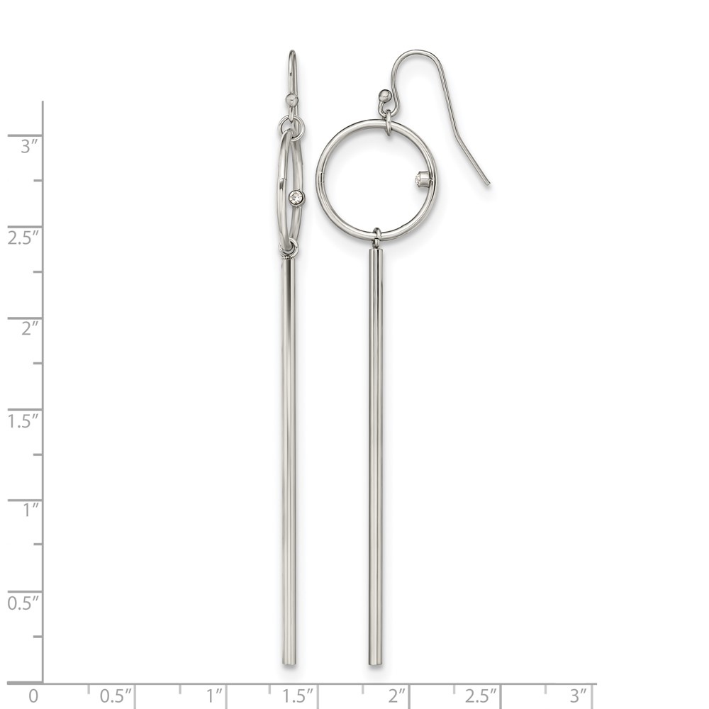 Chisel Stainless Steel Polished Circle with Crystal Accent Bar Dangle Shepherd Hook Shoulder Duster Earrings