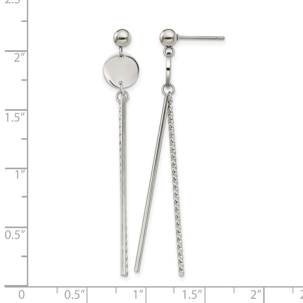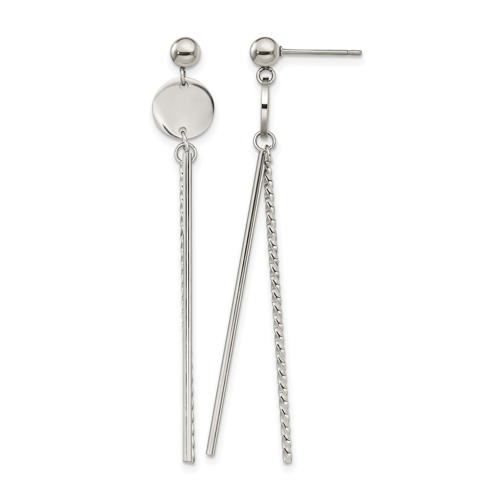 Chisel Stainless Steel Polished Disc and Bars Post Dangle Earrings