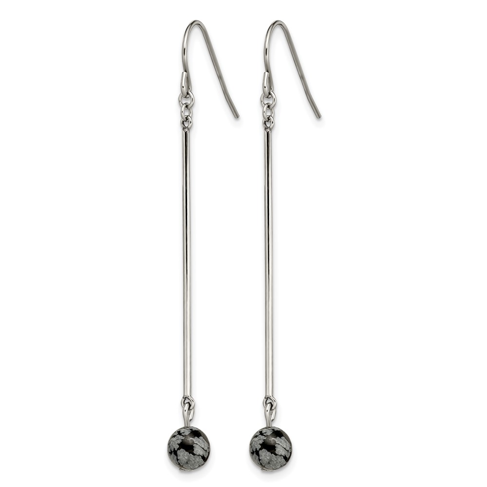 Chisel Stainless Steel Polished with Snowflake Stone Dangle Shepherd Hook Earrings