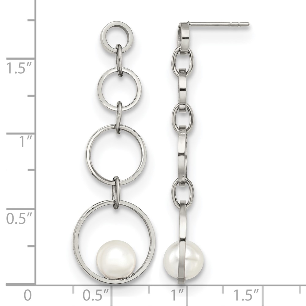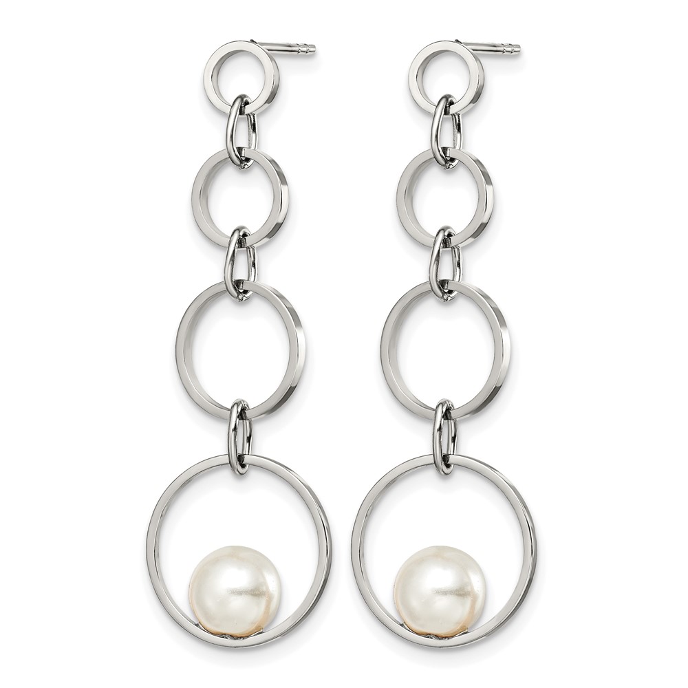 Stainless Steel Polished with Simulated Pearl Post Dangle Earrings