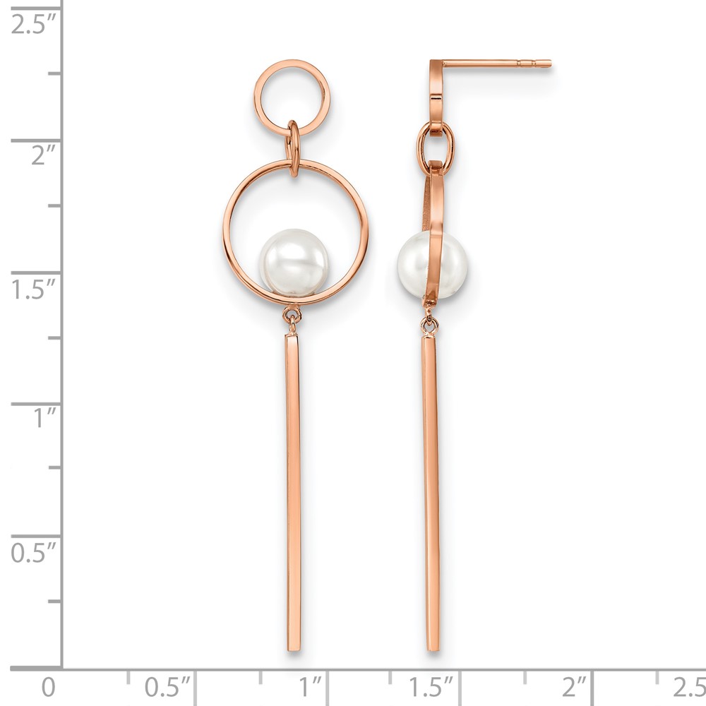 Chisel Stainless Steel Polished Rose IP-plated Simulated Pearl Post Dangle Earring