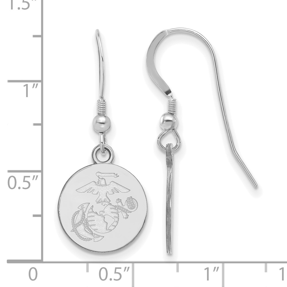 Sterling Silver Rh-Plat U.S. Marine Corps Disc Dangle Earrings